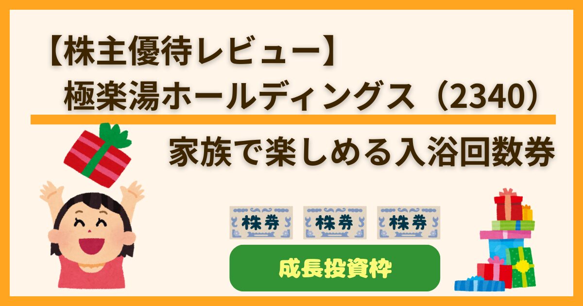 【株主優待レビュー】極楽湯ホールディングス(2340)|家族で楽しめる入浴回数券
