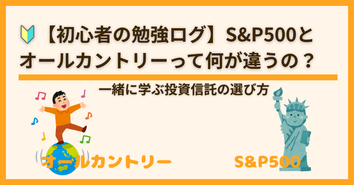 【初心者の勉強ログ】S&P500とオールカントリーって何が違うの?|一緒に学ぶ投資信託の選び方
