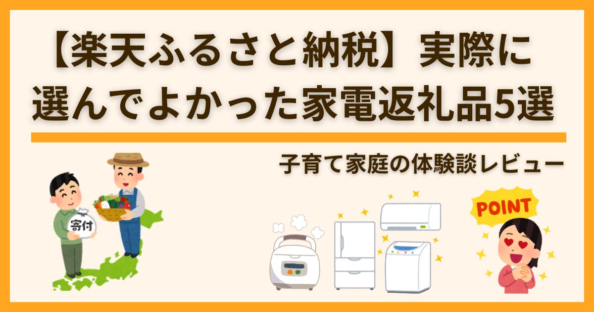 前回の記事では、楽天ふるさと納税で選んだ「水・お米・冷凍食品」といった生活必需品を紹介しました。今回は第二弾として、過去にふるさと納税で選んで本当に良かった家電返礼品を紹介します。どれも我が家で実際に使って役立っているものばかりです。